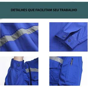 Indicado para trabalhos pesados que exijam durabilidade, resistência e excelente qualidade. Possui faixas refletivas na altura do peito e nas costas. É considerado como um item fundamental na segurança dos profissionais ou prestadores de serviços. Possui bolsos na altura do peito e um compartimento para canetas na lateral do braço esquerdo.