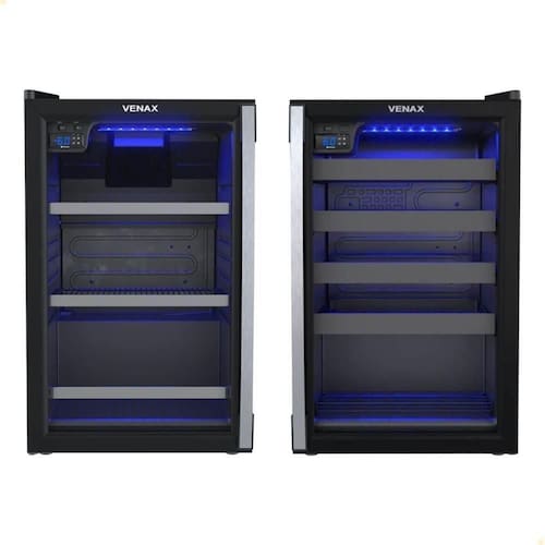 - Este conjunto exclusivo Venax traz a Cervejeira Expositora 102L com porta invertida, controle digital (-6C a 6C) e LED azul, perfeita para manter cervejas sempre geladas e à vista.