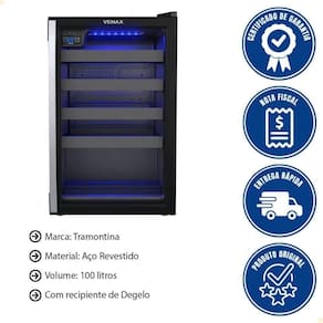 Ambos os produtos são ideais para uso doméstico e comercial. O design moderno em preto fosco, aliado à eficiência energética e funcionamento silencioso, torna o conjunto perfeito para bares, restaurantes, adegas, espaços gourmet e cozinhas planejadas. É expositor: Sim | É freezer: Não | Bateria: Não | Certificação: 0 | Componentes: 0 | Capacidade em volume: 100 L | Modelo alfanumérico: 37715, 7831 | Orientação: Horizontal | Com luz interior: Sim | É geladeira: Não | Voltagem: 220V | Com controle de temperatura: Sim | : Não | Dimensões: 0 | 2Característica: Etiquetas: Selo de | Garantia: 12 meses | Fonte de energia: elétrico | Fabricante: Venax | Largura: 49.5 cm | Altura: 80 cm | Profundidade: 61 cm | Temperatura mínima: -6C | Temperatura máxima: 6C | É cervejeira: Sim | Caixas: 1 | Peça: 1 | 1Característica: Isolamento Térmico: Poliuretano | 3Característica: Potência: 145W | Dias Fornecedor: 1 | Cubagem: 0.539240 | Peso Líquido: 0.0000 | EmbalagemAltura-cm: 170 | EmbalagemLargura-cm: 61 | EmbalagemComprimento-cm: 52 | Marca: Venax | Modelo: 37715 + 7835