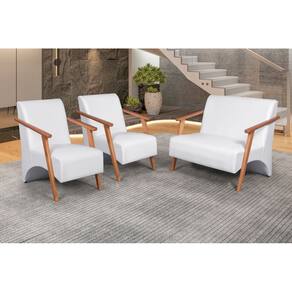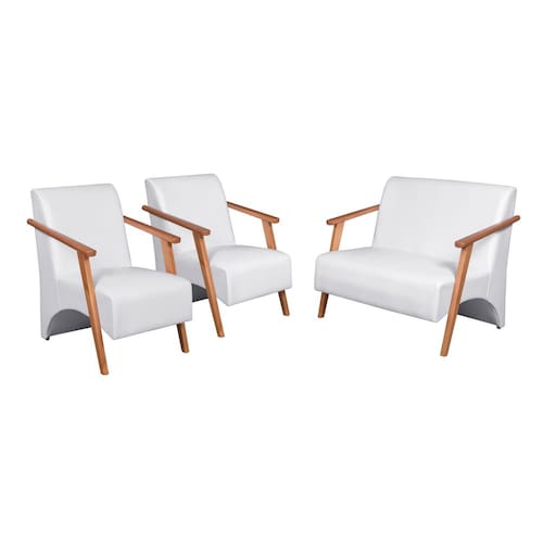 Conjunto Venus Braços em Madeira Maciça 1 Namoradeira 2 Poltronas Courino - Branco