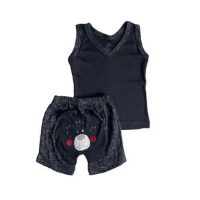 Conjunto Verão p/ Bebê Star Kids Blusa c/ Short Malha Fresca - G - Preto