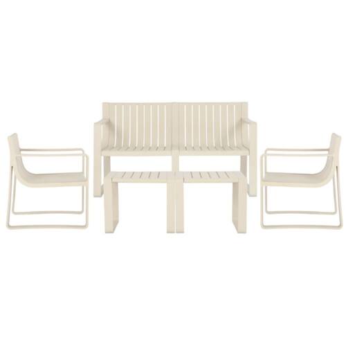 Esse conjunto conta com um sofá, duas poltronas e duas mesas de centro confeccionados em polipropileno reciclado tirado diretamente do fundo do mar. Possui também proteção UV, garantindo assim uma maior durabilidade das peças!