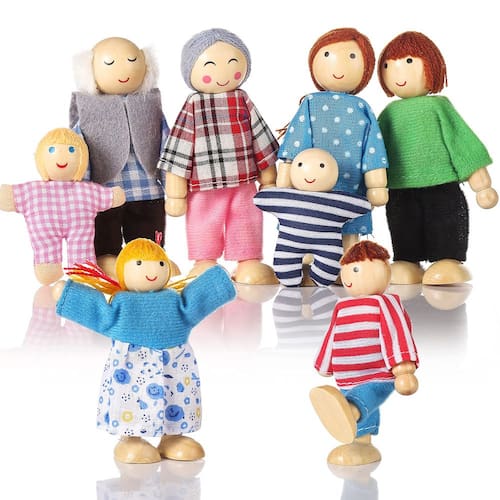Material seguro e resistente - Adorável família de bonecas de madeira: as bonecas flexíveis são feitas de madeira natural de alta qualidade e podem suportar anos de brincadeira. Perfeito para preencher conjuntos de jogos ou brincar com a família em qualquer ambiente imaginativo. - Família de casas de bonecas articuladas: as pequenas bonecas de madeira podem se mover para sentar, ficar em pé e outras posições de flexão. Crie crianças para realizar várias brincadeiras criativas e imaginativas. - Design realista: os bonecos para casa de bonecas têm roupas extremamente fofas, penteados bonitos e rostos amigáveis. Mais divertido de brincar. - Tamanho certo para brincar: o conjunto de pessoas de brinquedo contém avós, mãe, pai, filho, filha e dois bebês. Os personagens têm cerca de 5 cm de altura a 10 cm de altura, o tamanho certo para crianças em idade pré-escolar, crianças brincarem. Também é um acessório ideal para casa de bonecas para decorar a casa de bonecas. - Brinquedo educativo: promove criatividade e brincadeiras dramáticas, enquanto ensina as crianças sobre família e culturas. Ideal para dramatização e interação familiar em qualquer ambiente imaginativo.