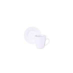 Fabricado em Porcelana. Coleção: Ingrid. Uso: Resistente a micro-ondas e lava-louças. Porosidade próxima de zero, evitando a proliferação de fungos e bactérias. Volume da xícara: 70 ml. Composto por: 2 peças (1 xícara e 1 pires). Serviço: 1 pessoa.