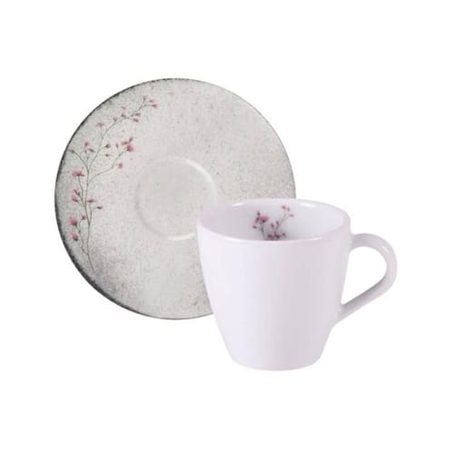 Conjunto Xícara e Pires de Chá Porcelana 200ml Tramontina Floralis Branca Decorada.