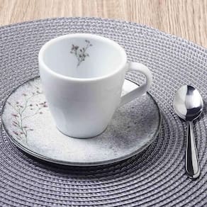 O conjunto Floralis Tramontina é inspirado na beleza natural das flores, unindo o charme rústico ao toque delicado do campo. Composto por uma xícara de 200ml e um pires, é ideal para uso diário, mesa posta ou eventos especiais. Podem ir à lava louças e ao micro-ondas, trazendo praticidade sem abrir mão da elegância. O kit Floralis é perfeito para um café da manhã acolhedor ou um chá da tarde encantador, seu design atemporal combina com todas as estações, porque a delicadeza das flores nunca sai de moda.