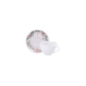 Fabricado em Porcelana. Coleção: Noite Feliz.Porosidade próxima de , evitando a proliferação de fungos e bactérias. Volume da xícara: 250 ml. Composto por: 2 peças (1 xícara e 1 pires). Serviço: 1 pessoa.*Dimensões técnicas referentes à embalagem master de que contém 6 conjuntos.
