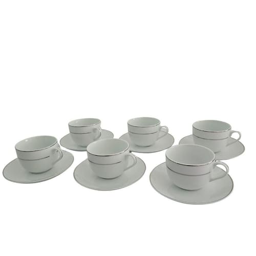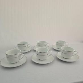 Serve 6 pessoas;Composição: 06 Xícaras e 06 Pires;Capacidade: 220mlMaterial: Porcelana;Cor: Branca e Prata;Modelo NEW BONECONTEÚDO DA EMBALAGEM: 01 ;CONJUNTO XÍCARAS COM PIRES CHÁ ;220ml L'HERMITAGE;MEDIDAS APROXIMADAS: ; Xícara Altura x ;Diâmetro ; -- Pires =Diâmetro 15 x Altura 2cmPARA , AS PEÇAS SÃO EMBRULHADAS EM PLÁSTICO BOLHA 1 POR 1 E ;COLOCADAS NA EMBALAGEM , POSTERIORMENTE ; EMBALAGEM É ENVOLVIDA EM ALMOFADAS DE AR E COLOCADA DENTRO DE OUTRA CAIXA DE PAPELÃO PARA MAIOR PROTEÇÃO E TOTAL PARA QUE RECEBA SEU PRODUTO EM PERFEITAS CONDIÇÕES.