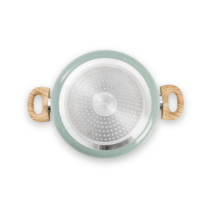 DIFERENCIAIS: o Jogo de Panelas Antiaderentes 6 Peças Indução Ceramic Life Botanika Brinox - Verde tem estrutura de alumínio que distribui o calor de forma homogênea. Os cabos e alças são em baquelite soft-touch com efeito amadeirado e garantem o manuseio com segurança. O revestimento Pro Ceramic Premium é um antiaderente com a tecnologia Mineral Resist, que reduz a necessidade do uso de óleo no preparo de alimentos e facilita a limpeza. O jogo integra o Projeto Green Planet Brinox. Seu material é alumínio reciclado + vidro temperado + cabos e alças de efeito madeirado.