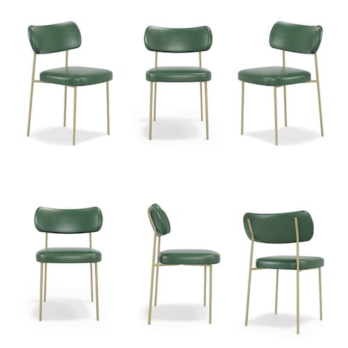 Conjuto 6 Cadeiras Stela Champanhe Fixa Courino Verde - Vallisa Decor