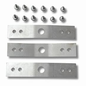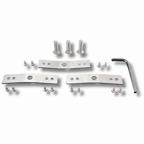 Kit de reparo para cesto de lava e seca Samsung, composto por 3 chapas de inox, 12 parafusos para fixação das chapas, 3 parafusos do eixo tripé e chave para instalação.Tipo