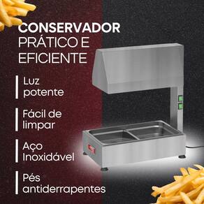 O conservador de frituras é um equipamento indispensável para quem deseja frituras sequinhas, crocantes e quentinhas por muito mais tempo. Se você trabalha com frituras, principalmente batatas, você precisa deste equipamento.