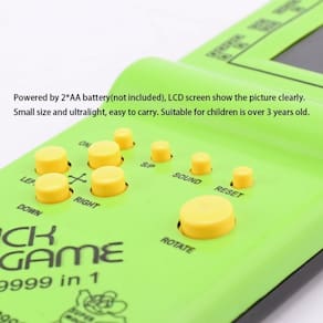 Características: Feito de ABS + componente eletrônico, durável. Máquina de jogos infantis, bom brinquedo de fantasia para crianças. Brick Snake Tetris, suporte, jogos, jogos, etc. Divertido e adequado às preferências das crianças. Alimentado por 2 pilhas AA (não incluídas), a tela LCD reflete a imagem com clareza. Tamanho pequeno e ultraleve, fácil de transportar. Adequado para crianças com mais de 3 anos. Especificações: Tipo: console de jogos portátil\ nQuantidade: 1 unidade\ nTecla: ON/OFF, S/P, som, reset, cima, baixo, esquerda, direita, girar\ nTamanho da tela: 4* 2,9 cm/1,6* 1,1 “(L * W)\ Tamanho do item: 18,3* 7,8* 2,5 cm/7,2* 3,1* 1 (L * W * H) Peso líquido: 72 g/2,5 oz Pacote: 1* console de jogos portátil 1* caixa de embalagem