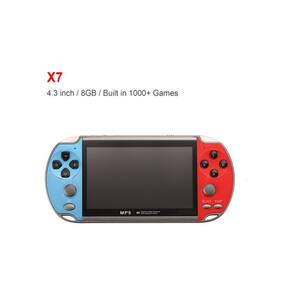 Características:\ nTela grande de alta definição de 7 polegadas (4,3 “/5,1"), melhor qualidade de imagem, proteção para os olhos. Console de jogos multifuncional, também suporta vídeo, música, e-books e outras funções. Memória de 16 GB/8 GB, mais de 1000 jogos embutidos, compatível com expansão de cartão TF. Suporta saída de vídeo de interface AV, conecte TV ou outras telas. Modo de controle duplo Cross Key + Rocker, jogando jogos de luta livremente. Especificações: Modelo: X7/X7 Plus/X12/X12 Plus Tipo: console de jogos\ nCor: azul e vermelho e vermelho-azul\ nMaterial: ABS Tamanho da tela: 4,3/5,1/7 polegadas” Console de jogos embutido: 1000 + Capacidade da bateria: 2500 mAh Método de download: conecte à porta USB do computador para baixarFormato de vídeo: BMVB, FLV, AVI, MP4, 3GP (suporta reprodução de vídeo 1080* 720P) voltar) Formato de música: MP3, WMA, WAV, etc. Se ele suporta economia de progresso:\ nExpansão máxima de memória:\ nCartão TF máximo de 32G (não incluído)\ nSe ele suporta saída AV: Sim\ nTamanho do pacote: 28,5* 13,5 * 5 cm/11,2 * 5,3* 2,0\ nPeso da embalagem: 504 g/17,8\ nLista de pacotes: 1 * Console de jogos\ n1 * Cabo de carregamento\ n1 * Fone de ouvido\ n1 * Manual do usuário