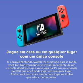 A diversão está garantida com este bundle do Console Nintendo Switch V2 com o jogo Mario Kart 8 Deluxe. Jogue na TV, no modo semiportátil ou leve o console para qualquer lugar. A Versão 2 oferece uma bateria com maior duração, e com Mario Kart 8 incluso, você já começa a jogar um dos maiores sucessos do console.