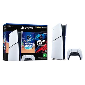 Descubra a nova geração dos jogos com o PlayStation 5 Slim ? Edição Digital Experimente dois títulos exclusivos e aclamados da PlayStation com este pacote especial do console PS5, que combina desempenho de última geração com um excelente custo-benefício. O bundle inclui o jogo vencedor do prêmio Jogo do Ano de 2024, ASTRO BOT, e o simulador de direção Gran Turismo 7, oferecendo uma experiência completa logo de início. Com carregamento ultra-rápido, recursos imersivos como feedback tátil, gatilhos adaptáveis e áudio 3D, o PS5 leva você a um novo patamar de jogabilidade.
