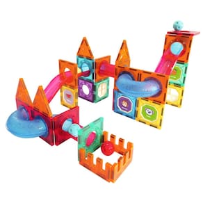 Conteúdo da Embalagem: - 27 peças magnéticas - 18 peças de encaixe - 16 peças para montar tubos - 02 peças para rampa - 04 bolas - Acompanha cartela de adesivos