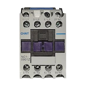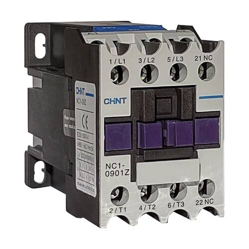 Produto: Contator Linha: NC1 Modelo: NC1-0901Z Fornecedor: Chint Corrente nominal operacional: 9A Tensão nominal de isolamento: 690V Potência Nominal: 4kW Contatos: 3NA+1NF Bobina de Operação: DC