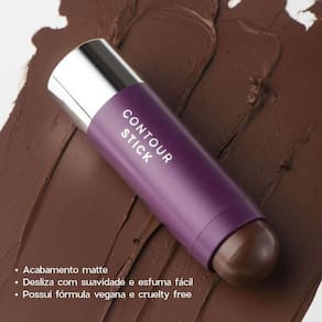 Contorno em Bastão Contour Stick Coffee Océane Purple 6g O contorno facial faz total diferença na produção E o Contour Stick veio para ser seu aliado até quando você estiver com pressa, já que ele dá definição e profundidade ao rosto de maneira rápida e simples. Venha conhecer mais sobre esse produto incrível A aplicação é super prática Ele desliza bem na pele e esfuma com muita facilidade, já que possui uma textura cremosa mais que confortável. Por ser no formato de maquiagem em bastão, dá para aplicar a cor exatamente onde você deseja com precisão, pois tudo o que queremos é facilidade na hora de se arrumar, não é mesmo Outro diferencial desse contorno em bastão é sua fórmula com cera de candelila e óleo de semente de jojoba, ativos que ajudam a manter a pele saudável e ainda melhoram a espalhabilidade do produto. Porque a gente adora quando beleza e cuidado andam sempre juntos O Contour Stick conta com um acabamento matte para criar um efeito natural na pele. Possui 3 cores para ser bem acessível na hora de escolher o tom de contorno. Coffee é a cor mais escura da linha e vai se adaptar super bem em diversos tons de pele. E não para por aí: este contorno Océane é cruelty free e vegano, além de contar com uma embalagem que não ocupa espaço na bolsa. Depois que você experimentar, vai querer usar seu Contour Stick sempre Qual é a vantagem de usar o Contour Stick A praticidade é a primeira vantagem que vai te impressionar, afinal, é só passar o produto e esfumar. O Contour Stick também dura por bastante tempo na pele, já que ele tem uma ótima aderência no rosto. E outro ponto é embalagem compacta e que não espalha produto na bolsa. Deu para notar que só tem benefícios, né Qual o benefício de Contour Stick para minha pele Um benefício que vale a pena mencionar é que o produto auxilia a manter a pele hidratada. A Cera de Candelila faz aquela proteção maravilhosa contra o ressecamento por fazer um filme em torno da pele e o Óleo de Semente de Jojoba ajuda a repor a hidratação. Mas não se esqueça que quem realmente vai hidratar com propriedade sua pele é o hidratante facial e o Contour Stick tem que ser removido da pele ao final do dia para manter seu rosto saudável, beleza