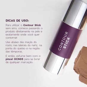 Contorno em Bastão Contour Stick Toasted Océane Purple 6g O contorno facial é um truque famoso para dar definição ao rosto e conferir profundidade para seus traços. E para fazer isso de maneira prática e confortável, Océane traz o Contour Stick, o bastão ótimo para usar no dia a dia. Por ser uma maquiagem em bastão, o Contour Stick é muito fácil de usar, já que ele deposita a maquiagem diretamente no local desejado e desliza com suavidade, graças a sua textura cremosa, que também esfuma muito bem. Ou seja, é ótimo para se maquiar tanto na correria diária quanto numa produção mais elaborada. Além disso, sua fórmula conta com a cera de candelila e o óleo de semente de jojoba. Esses ativos dão mais emoliência ao produto, além de ajudar a manter a pele hidratada. Ou seja, Contour Stick é puro conforto na aplicação e na sensação que deixa no rosto. O produto está disponível em 3 cores para você escolher o tom certo de contorno facial. Toasted é um marrom claro de fundo quente com acabamento matte que realça sua beleza enquanto define o formato do rosto. Este contorno em bastão ainda tem a vantagem de ser um produto vegano e cruelty free, além de ter uma embalagem super prática que pode ser levada na bolsa. Com Contour Stick, você descobrirá o jeito smart de se fazer um contorno facial Qual é a vantagem de usar o Contour Stick Uma das vantagens desse produto é a praticidade, já que, por ser em bastão, é só passar na área que deseja definir e esfumar. A sua produção fica pronta em poucos segundos Outro ponto que vale destacar é a sua durabilidade, já que ele se adere bem à pele. E a embalagem também é tudo: o produto não vaza e você pode levá-lo no nécessaire de viagem tranquilamente. Qual o benefício de Contour Stick para minha pele O benefício que merece atenção é que este blush em bastão ajuda na hidratação da pele. Ele é formulado com Cera de Candelila, que forma uma camada protetora sobre a pele para manter a umidade dentro dela, de modo a evitar o ressecamento, e o Óleo de Semente de Jojoba, que ajuda a repor a umidade perdida. Porém, ele não substitui seu hidratante facial e precisa ser removido após o uso, como qualquer produto de maquiagem.
