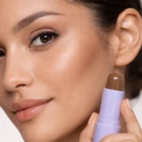 Esfume o produto com um pincel, esponja ou com os dedos, para um acabamento natural e uniforme.