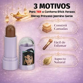 Aplique o Contorno Stick Fenzza Disney Princesa Jasmine Dis109 diretamente nas áreas que deseja contornar, como abaixo das maçãs do rosto, nas laterais do nariz e na linha do maxilar.