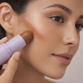 Esfume o produto com um pincel, esponja ou com os dedos, para um acabamento natural e uniforme.