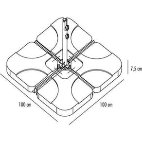O contra peso possui dimensões imponentes de 100x100x7,5cm, oferecendo uma base sólida e ampla para garantir a estabilidade do seu ombrelone ou guarda-sol. Com ele, você não precisa se preocupar com quedas ou acidentes.