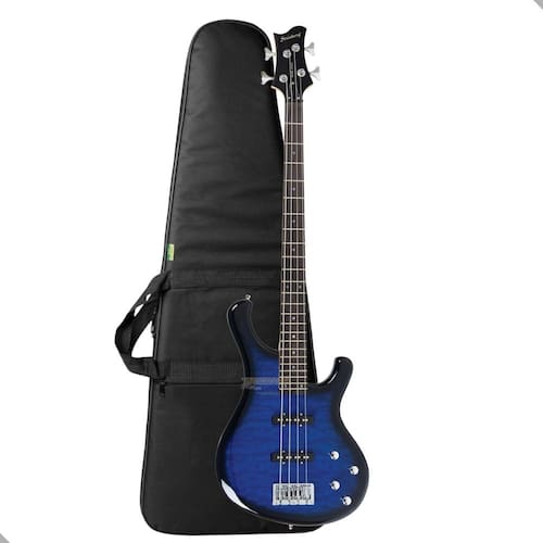 - Modelo: SAB400 - Formato do corpo: Custom - Cor: Transparent Blue TBL - Acabamento: Brilhante - Construção: Bolt-on Neck junção parafusada - Encordoamento: .040 - Número de cordas: 4 - Empunhadura Mão : Destro - Corpo: Basswood Sólido - Tampo: Quilted Maple Printed - Braço: Maple - Escala: Technical Wood - Marcações: Dots - Tensor: Sim. Bilateral - Nut Capotraste : 41,5mm - Número de trastes: 24 - Escudo: N/A - Ponte: Standard - Tarraxas: Blindadas Cromadas - Circuito: Ativo 9V - Captadores: 2 JB - Jack: P10 - Controles Eletrônicos: 1 Potenciômetro de Volume, 2 Potenciômetros de Tonalidade, 1 Balance. Conteúdo da Embalagem:
