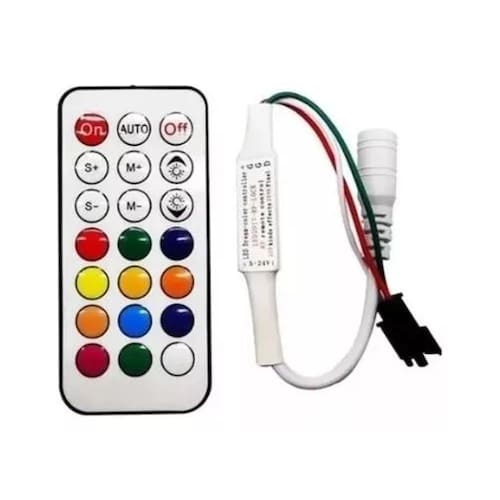 Controle/Controladora SP104e 2.048 Pixels 5 a 24v Para Fita Led Digital Endereçável Ws2811, Ws2812 e Ws2812b.ATENÇÃO:- O anúncio é referente apenas o Controle + Controladora , não acompanha fita.- Recomendamos ligar uma fonte de 3A somente para a Controladora SP104e.- Quando for utilizar a Controladora em uma Fita de Led de 5v a Controladora também deve ser ligada em 5v.- Quando for utilizar a Controladora em uma Fita de Led de 12v a Controladora também deve ser ligada em 12v.- Se fizer diferente do que orientamos acima vai queimar a controladora ou a fita de Led.ESPECIFICAÇÕES- Mini Sem Fio 17 funções- Tensão: DC5-24V- Tipo de suporte IC: APA102/WS2812B WS2811/WS2801/LPD8806/SK6812 RGBW suporte básico no mercado todas as 3 linhas Sinfônicas luzes- Conexão: APA102 levou barra de luz//WS2812B WS2811/WS2801/LPD8806/SK6812 RGBW- Modo: 316 modos- Modo de controle remoto- Freqüência: 433.92- Controlador de distância; 10-20 metros- Controle de 2048 pixelsSensibilidade remota: Muito Sensível- RF placa integrada sobre a integração, sensível e estável, fácil para facilitar a placa não é quente- Mais de 300 tipos de efeitos, pico no mercado todos os controlador Sinfonia- A reprodução automática, ajustar o número de pontos, velocidade, função de desligamento automaticamente salvar- Existem 75 tipos de padrões, vívida e bonita; para evitar que a inversa da fonte de alimentação.- Suporta quase todos os tipos de único ou dois-wire LED driver ICs; (personalizável)- Controle remoto RF, de longa distância, mini tamanho, fiação simples, fácil de usar.
