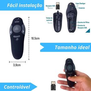 Controlador controle wirelles laser presenter para projetor pc Descrição do anúncio: Controle remoto para apresentações powerpoint com laser Este controle remoto sem fio é ideal para apresentações em powerpoint, pdf e word, permitindo um controle remoto eficaz. Inclui um ponteiro laser vermelho para destacar o conteúdo da apresentação. As funções incluem page up, page down, esc e tela preta, tornando-o uma ferramenta essencial para professores, profissionais e estudantes. Conteúdo da embalagem: 01 controle remoto 01 pilha aaa inclusa 01 usb Características: Frequência de transmissão: 2,4 ghz Plug and play simples e fácil de usar Controle suas apresentações até 15 metros de distância Sensação de toque agradável e confortável de segurar Laser emissivo abaixo de 0,5 mw Conformidade com as normas ida da103073 Compatível com windows 2000/xp/vista/7/8/10 Certificado: fc, ce, rohs Alimentação: 1 x pilha aaa inclusa Especificações: Dimensão: 106 x 38 x 26 mm Cor: preto Peso líquido: 28g usb: frequência 2.4ghz, voltagem 5v Transmissor: distância de comunicação até 12 metros, potência de saída laser de 5 mw máx Principais perguntas sobre o produto e respostas: Qual é a distância máxima de controle do dispositivo O controle remoto permite controlar suas apresentações até 15 metros de distância. O controle remoto é compatível com quais sistemas operacionais É compatível com windows 2000, xp, vista, 7, 8 e 10. Qual é a potência do laser do controle remoto O laser tem uma potência emissiva abaixo de 0,5 mw. A pilha aaa está inclusa na embalagem Sim, a pilha aaa está inclusa na embalagem. Quais são as funções disponíveis no controle remoto O controle remoto possui funções de page up, page down, esc e tela preta. O controle remoto é fácil de usar Sim, ele possui a funcionalidade plug and play, tornando-o simples e fácil de usar. O controle remoto é confortável de segurar Sim, ele possui uma sensação de toque agradável e é confortável de segurar. Quais são as certificações do controle remoto O controle remoto é certificado pela fc, ce e rohs, garantindo segurança e qualidade. Qual é o peso do controle remoto O peso líquido do controle remoto é de 28g. Qual é a dimensão do controle remoto As dimensões do controle remoto são 106 x 38 x 26 mm. 4o Homologação Anatel: 112572013224