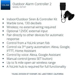 - Multifuncional! Use como um alarme de pânico, como uma sirene de intrusão doméstica, ative se uma porta ou tampa ficar aberta por muito tempo, e use-a como um alarme para vazamentos de água* e alta ou baixa temperatura e umidade* ou todas as opções acima! * Dispositivos YoLink adicionais necessários, não incluídos.