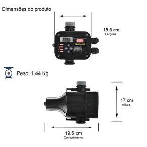 Controlador automático de pressão, necessita ser instalado/rosqueado no recalque de bombas com motores Monofásicos até 1,5cv em 220v para pressurização de residências, construção civil e de equipamentos em geral compatíveis com as caraterísticas do produto.