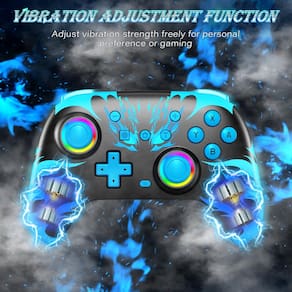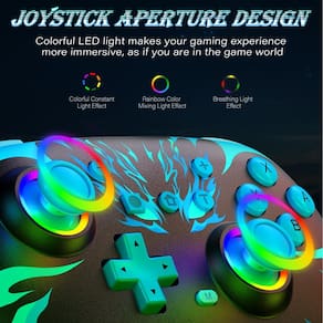 Controle Wireless Switch Pro - Controle legal: mergulhe em um mundo vibrante de jogos com o recurso LED de respiração colorido do nosso controle interruptor. Escolha entre 9 cores dinâmicas e 3 modos de iluminação para combinar com o seu jogo, criando uma atmosfera que melhora sua experiência de jogo - Controle de precisão e feedback realista: experimente o controle de movimento preciso com nosso sensor giroscópio supersensível de 6 eixos. Motores de vibração dupla fornecem feedback oportuno, fazendo com que cada ação no jogo pareça real e imersiva, melhorando sua experiência de jogo - Liberdade sem fio: liberte-se das restrições dos controles com fio. Com um alcance sem fio de até 7 metros, você pode se mover e jogar com liberdade incomparável, dando a você uma vantagem em jogos de luta competitivos - Tempo de reprodução estendido: aproveite sessões de jogos prolongadas com até 15 horas de diversão com uma única carga. E se sua bateria estiver fraca, você pode continuar jogando sem problemas enquanto carrega com um cabo de dados - Características fáceis de usar: nosso controle switch pro oferece emparelhamento rápido conveniente para conexão sem complicações. Também inclui um botão Home com função de despertar, permitindo que você retorne rapidamente ao seu console de jogos. Tudo isso, há outros recursos esperando por você para explorar