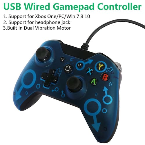 Controlador de joystick para Xbox One Wired 5 cores Cor: preto, azul, rosa, preto transparente Conexões: comprimento do cabo com fio: cerca de 2.2m / 7.2ft Feedback de vibração: vibração dupla Plataforma de trabalho: para Xbox One / PC com owsTamanho do produto: 158mm * 144mm * 66mm / 6.22 * 5.66 * 2.59'' Característica: 1. Para o comando Xbox One, concebido para utilização com a consola Xbox One, tem um design preciso e é ideal como um comando alternativo ou adicional.2. Plug and play para Xbox One, incluindo um cabo de alimentação de 2,2 m para carregamento.3. Feedback de vibração: O motor de vibração de feedback e o gatilho de pulso adicionam mais elementos ao seu jogo. Experimente o seu jogo de uma forma emocionante.4. Compatibilidade com ows: O Xbox One Wired Controller também é compatível com o ows, tornando-o um ótimo controle para todos os tipos de jogadores.5. Tomada e controles de áudio de 3,5 mm: Conecte seu fone de ouvido ao conector de áudio de 3,5 mm para bate-papo e controle de volume diretamente no controle.