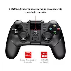 Código de barras: 7898864314424 Código Anatel: 05854-22-14325 Controle Gamer Celular Joystick Manete Bluetooth Marca:Altomex Características: Sistema de suporte: Android, PC, PS3 Suporte Sistema Android, Win XP/ 7/8/10 com receptor sem fio 2.4G Com função de aceleração Turbo, mais poderoso e rápido, no modo mouse, ele possui função multimídia Aplicar Smartphones com tela de 4 a 6 polegadas Especificação: Funções: Bluetooth 3.0 Compatível com: Android, PC (Produto não compatível com Windows Phone e IOS sem jailbreak) Tipo de Conexão: 2.4GHz Wireless, Bluetooth Material: ABS Tipo de bateria: Built-in Capacidade da bateria (mAh): 380mAh Tensão da bateria: 3.7v Modo de carga: carga USB Tempo de carregamento: 8h Tempo de Duração: 10h -Produto único e confortável projetado e fabricado ergonomicamente correto -Duplo analógico com rotação em 360 graus -Controle com alta precisão e alta sensibilidade -Com sistema de vibração incorporado. Itens inclusos: 1x Controle Gamer Celular Joystick Manete 1x Manual de instruções 1x Cabo de carregamento 1x Receptor Bluetooth Disponível na cor: -Preto