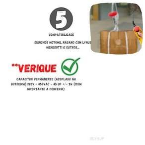 Capacitor permanente acoplado na botoeira 220v - 450vac - 45 uf +/- 5% item importante a conferir - pode ter diferença de 5% para mais ou para menos Parafuso cab. Chata phillips din 7982 m4 x 14 zb Botão de subida/descida Botão de emergência