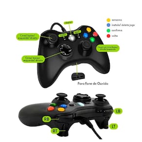Controle Joystick Com Fio Usb Pc Video Game Preto Vibratório