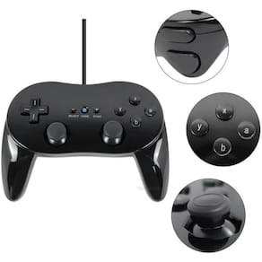 Controle pro clássico para wii com fio preto Características: 8 botões: x y a b l r zl zr L/r, botões zl/zr projetado em linha vertical. Botões l/r projetada em número. Use a função de comunicação do controle remoto. Motor de alta qualidade para maxmimum feedback de vibração. Permite que você jogue jogos livremente, a qualquer momento. Compatível com todos os jogos.