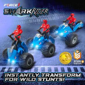 - Carro acrobático dinâmico de LED RC para crianças: mergulhe em brincadeiras de aventura com o Force1 Storm Rider. Este carro com controle remoto oferece cativantes 360 giros, pneus de borracha resistentes para excursões off-road, luzes LED luminosas e efeitos sonoros envolventes. Cada carro vem com um boneco de ação removível que pode sentar ou ficar em pé durante a viagem. Escolha entre os designs Shark Rider ou Storm Rider, tornando o jogo solo ou as corridas com amigos igualmente emocionantes. Ideal para quem é novo no mundo dos carros de controle remoto!