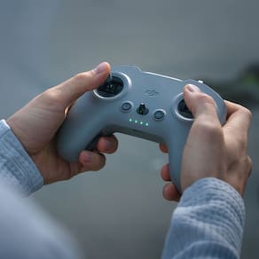 O DJI FPV 3 é mais leve e possui um tempo de operação ainda mais longo. Os sticks dos controles estendidos em 2 mm permitem um encaixe mais confortável, facilitando o uso do controle, seja com um ou dois dedos.