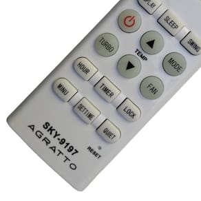 Controle Remoto para Ar Condicionado Agratto Fit 9000 a 12000 BTUs O Controle Remoto para Ar Condicionado Agratto Fit é um produto de ótima qualidade, compatível com os modelos da linha Agratto Vogga. Com teclas emborrachadas confortáveis e longa vida útil, este controle possui alta sensibilidade e não precisa de configuração. Compatibilidade: Este controle é compatível com os modelos da linha Agratto Vogga, substituindo os seguintes controles: KKG9A-C1, KKG7A-C1, KKG7B-C1, KKG9A-C2, KKG9B-C1, KKG9B-C2. Alimentação: O Controle Remoto para Ar Condicionado Agratto Fit funciona com 2 pilhas AAA 1.5V, proporcionando um excelente tempo de resposta. Material Durável: Feito de ABS durável, este controle remoto é resistente e possui uma ótima durabilidade. Itens Inclusos: Na embalagem, você encontrará 1 controle remoto para ar condicionado Agratto Fit. O produto é testado antes do envio, garantindo a sua qualidade. : Este controle remoto possui do vendedor de 6 meses, contra defeitos de fabricação. Além disso, o produto está em , pronto para ser enviado. Marca: Não Informado Ean: 7900016012949