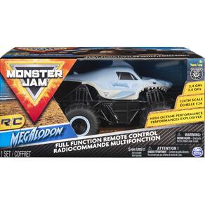 Monster Jam, Monster Truck de controle remoto oficial Megalodon, escala 1:24, 2,4 GHz, para crianças a partir de 4 anos - Megalodon oficial: seu Megalodon em escala 1:24 é um caminhão Monster Jam oficial! Ele vem completo com pneus BKT patrocinadores oficiais e um chassi parecido fazendo seu caminhão monstro parecer real! - Pronto para rolar: este caminhão monstro RC totalmente funcional possui um controlador de joystick duplo com frequência de 2,4 GHz que oferece um alcance de até 76 metros e permite que você corra até 6 caminhões por vez! - Caminhões RC REALISTAS: os caminhões Monster Jam têm poder, atitude, emoção e ação! Eles apresentam gráficos autênticos, pneus grandes e detalhes altamente realistas. Para meninos e meninas a partir de 4 anos. - Presente da lista de desejos: nossos brinquedos monster trucks são um presente perfeito de feriado ou aniversário para meninos e meninas a partir de 4 anos. As crianças vão adorar a diversão de alta octanagem de sua própria réplica realista de monster truck - Inclui: 1 x Monster Truck, 1 x controlador, 1 x manual de instruções (sem garantia de versão em português)