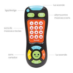 Os bebês adoram brincar de apertar os botões! O Controle Remoto Musical da Buba é diversão pura. Possui diversas músicas, sons de discagem e efeitos sonoros, ideais para desenvolver os sentidos dos pequenos.