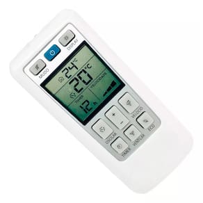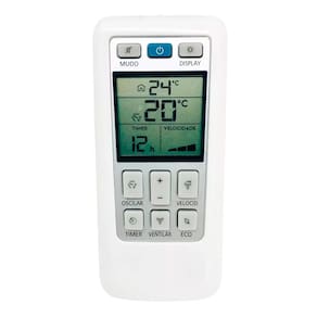O controle remoto possui um design moderno e ergonômico, com botões de fácil identificação e um visor de lcd que exibe as informações de forma clara e intuitiva. Além disso, ele é leve e compacto, o que facilita o seu manuseio e armazenamento.