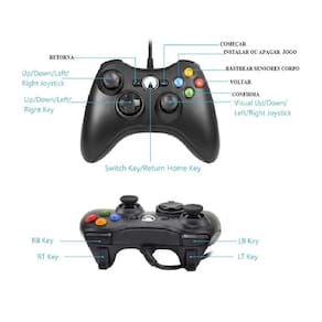 Controle Video Game Xbox 360 Com Fio Joystick Xbox360 E Pc Controle ergonômico, produzido com material de alta qualidade, proporcionando resistência e durabilidade. Perfeito para você jogar quantas horas desejar, tornado suas horas de lazer, muito mais divertidas. Possui cabo de mais de 2 metros de comprimento, tanto mobilidade total para o jogador. Compatível com Xbox 360 e PC. Características: Modelo: Controle Xbox 360 com Fio Usb Cor: Preto Com fio Conexão: USB 2.0 Compatibilidade: Xbox 360 e PC Sistemas operacionais compatíveis: Windows 10/ 8 / 7 Comprimento do cabo: 2,1 metros Dimensões: 11cm x 15cm x 6cm A x L x P Entrada P1 Integrada para Fone de Ouvido Peso: 247g. Itens inclusos 1x Controle Xbox360 e PC com fio USB Marca: Não Informado Ean: 7908122371653