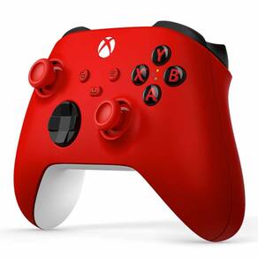 O Controle Sem Fio Xbox na cor Pulse Red apresenta um visual vibrante com uma superficie frontal em vermelho intenso e a parte traseira em branco nitido. O design foi modernizado com superficies esculpidas e uma geometria refinada para proporcionar maior conforto durante sessoes de jogo prolongadas. A ergonomia aprimorada adapta-se a uma ampla variedade de tamanhos de mao, garantindo uma pegada firme e natural.