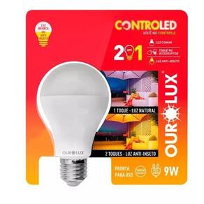 ?A Lâmpada Inteligente ControLED 2 em 1 Anti-Inseto (código 20482) da Ourolux é uma solução inovadora que oferece duas funções em um único produto: iluminação convencional e modo anti-inseto. Essa funcionalidade permite alternar entre uma luz branca fria de 6500K e uma luz amarelada de 1900K que não atrai insetos, proporcionando maior conforto em ambientes internos e externos.?