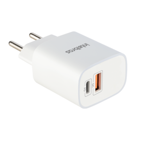 O EC 11 Power 20W é um carregador USB rápido e versátil, com 2 saídas, sendo uma delas no formato USB-C e a outra em USB-A, oferecendo flexibilidade para atender os mais diferentes tipos de dispositivos, dos mais novos aos mais antigos. Com saída USB-C Power Delivery (USB-C PD) com potência máxima de 20 W, ele carrega seu aparelho até três vezes mais rápido* que um carregador convencional.