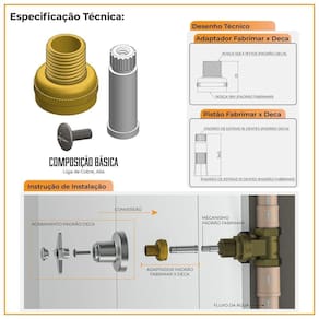 O conversor adaptador, permite que você instale e transforme os acabamentos de registro modelo fabrimar, deixando compatíveis com o seu registro Deca. A instalação é bem simples.